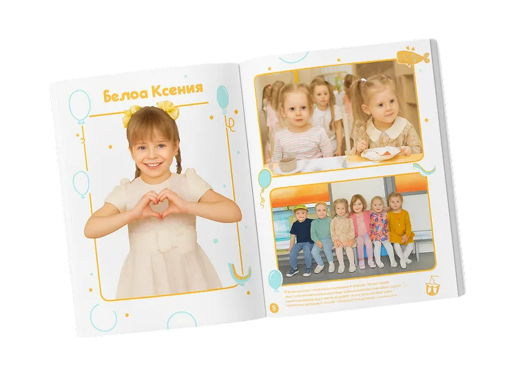 У нас представлено 13 стильных дизайнов альбомов на выбор: от «Африки» и «Игрушек» до «Пикселя» и «Рисунков». В каждом макете фотоальбома — портреты всех выпускников, групповые фото, репортажные кадры и снимки воспитателей. Примеры наших работ есть на сайте.