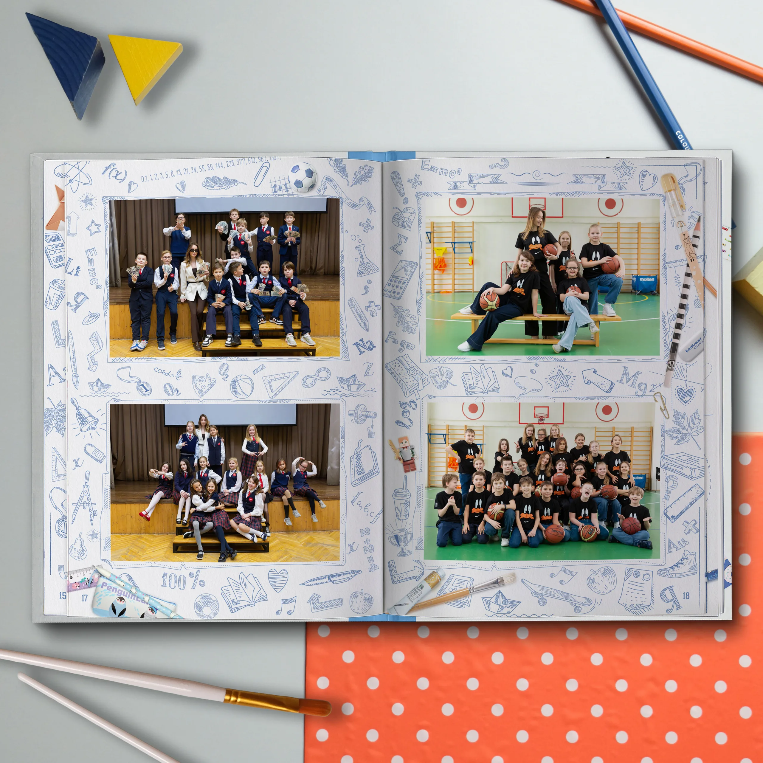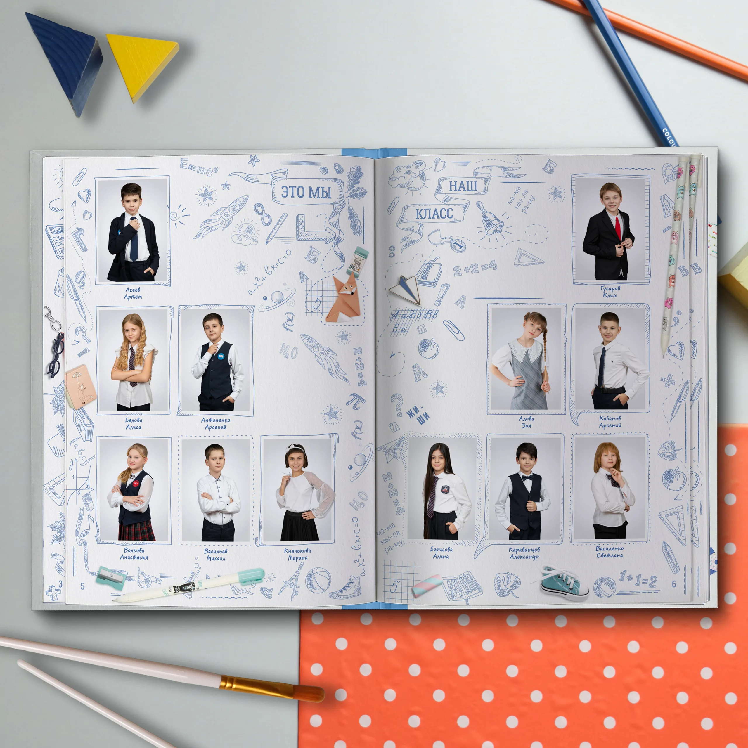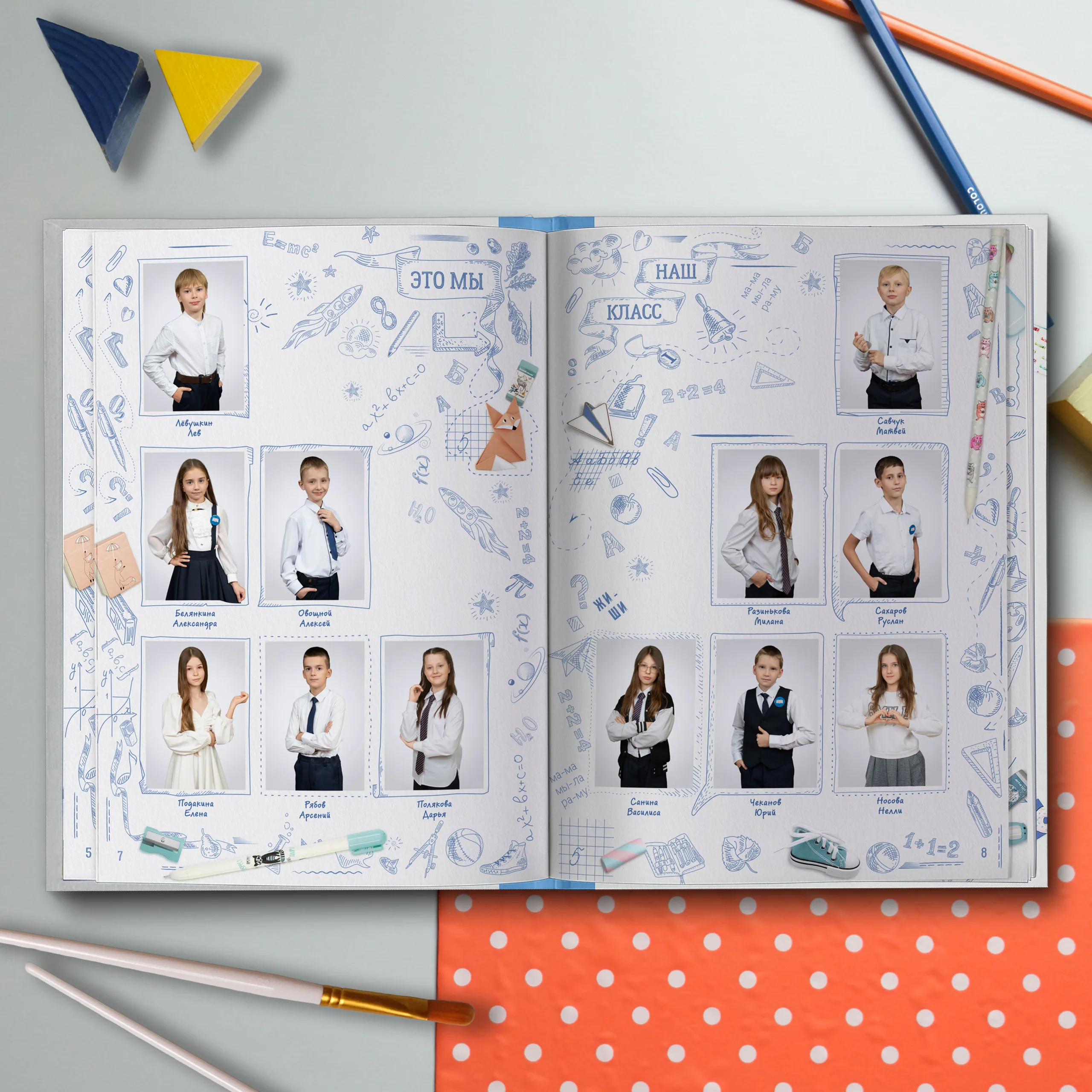 Полюбившийся многим дизайн теперь в светлом оформлении. Яркие кадры юности на фоне, напоминающем изрисованную тетрадь, непременно окунут выпускников в приятные воспоминания. Выпускной альбом в классном современном дизайне не оставит равнодушным ни одного ученика.