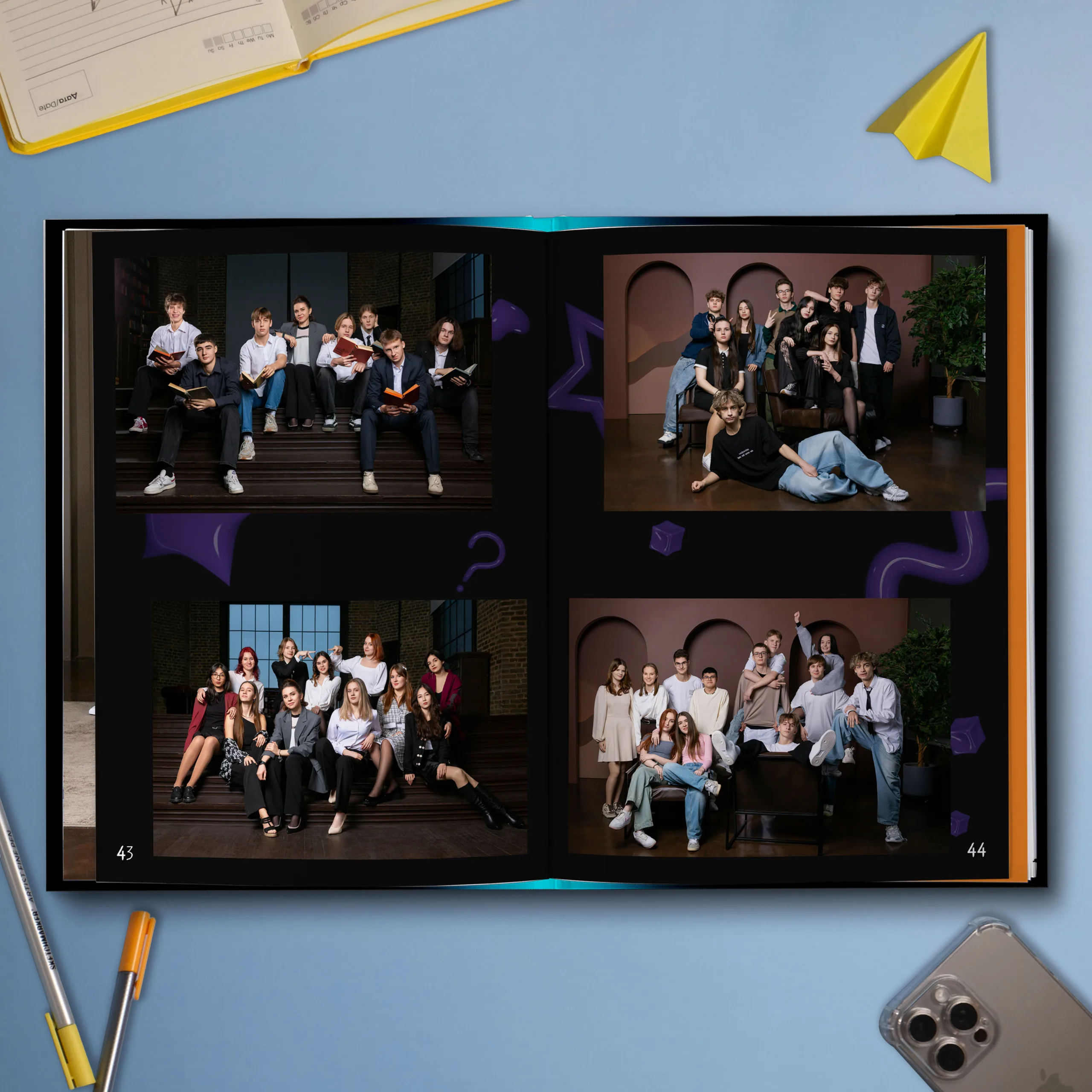 Последние 3 разворота — общие репортажные фотографии класса (12 шт.)